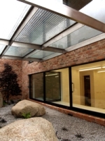 This project is a new private house and garden that is modern in design yet sensitive to its suburban setting. The selection of robust materials, such as white plaster, reclaimed brick and concrete floors, embed the building into the landscape.