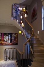 Two properties were joined at the the lower ground floor to create a generous family home. The house was remodelled throughout with bespoke joinery in each room, a stone staircase, cinema room and an accoustically lined summer house.