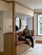 Lighthouse Pedagogy Trust’s first children’s home, in Sutton, is home to up to six children from 12-17 years old, including two care leavers of 16+ in more independent flats on the second floor. The building was reimagined and fully renovated transforming a derelict old people’s home. With a strategy of using solid, quality materials giving sturdy, as well as beautiful finishes throughout the home an exceptional nurturing, calming and therapeutic atmosphere was created. Features include doors and their frames are solid oak, limestone kitchen worktops, with visible fossils, a landing niche with a circular cushion makes a natural and comfortable space to be. The house has been thermally upgraded, with primarily plant-based materials and without the help of gas. Smooth lime plaster sits over wood fibre insulation in the relined envelope. An air source heat pump and an exhaust air heat pump fed by the naturally warm kitchen, bathrooms, laundry and plant rooms do much of the heating, while invisible infrared panels operated by the building management system provide warmth quickly when needed, plus lighting and CO2 sensors. When the roof was repaired (along with the front of the house), 20 photovoltaic panels were also installed.