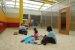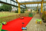 Developed for the National Day Nurseries Association (NDNA) in Hounslow, a yellow steel and polycarbonate canopy provides an umbrella for flexible nursery spaces below. The internal spaces are pods, which can be altered or moved to suit future nursery needs.