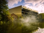 This project is a new mixed-use development in London that includes 40 apartments at mixed-tenure and a ground floor commercial space. Built to Sustainable Homes Code 3 and incorporating solar water heating and grey water recycling, the materiality is a selection of bright copper sheet, gabion and ivy facades.