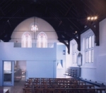 Refurbishment of an existing church to provide a contemporary and dramatic worship space, flexible community buildings and a small terrace of housing, all built around one shared courtyard.